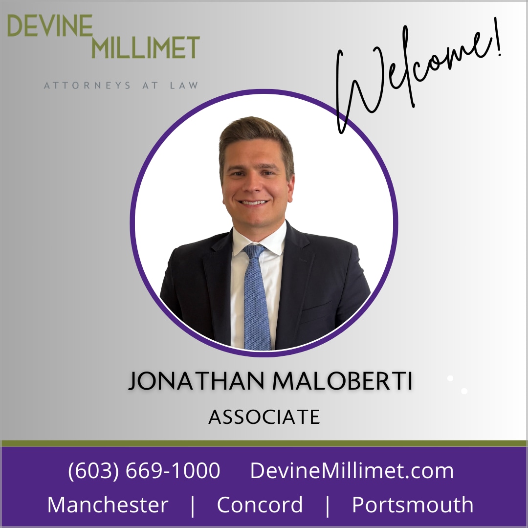 Manchester, NH – Devine Millimet welcomes our newest Associate attorney, Jonathan Maloberti, to the firm's Manchester, New Hampshire office.