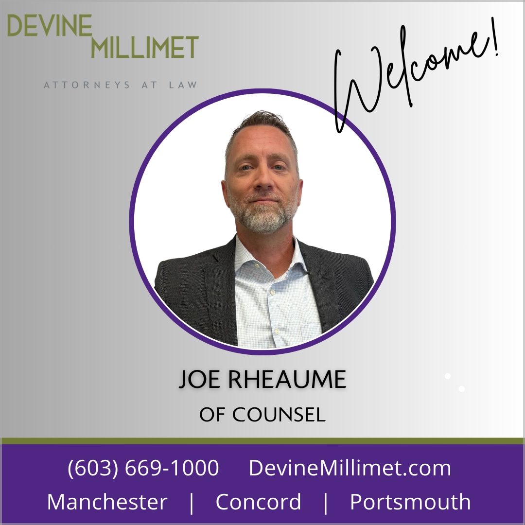 Manchester, NH – Devine Millimet is pleased to welcome back Of Counsel Attorney, Joe Rheaume, in the firm’s Manchester office.